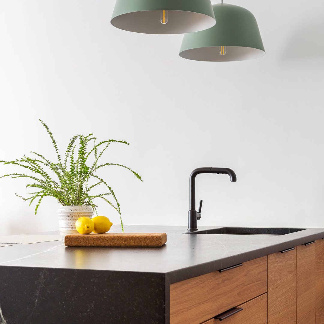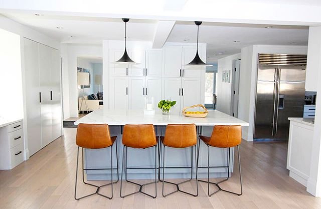 However, it’s good to think of your lighting plan three-dimensionally, and ways to layer it. Recessed lighting will provide continuous illumination across the kitchen while helping to highlight any decorative fixtures over the island. If the pendants are shiny, complementing them with recessed lighting will help show off the design.
