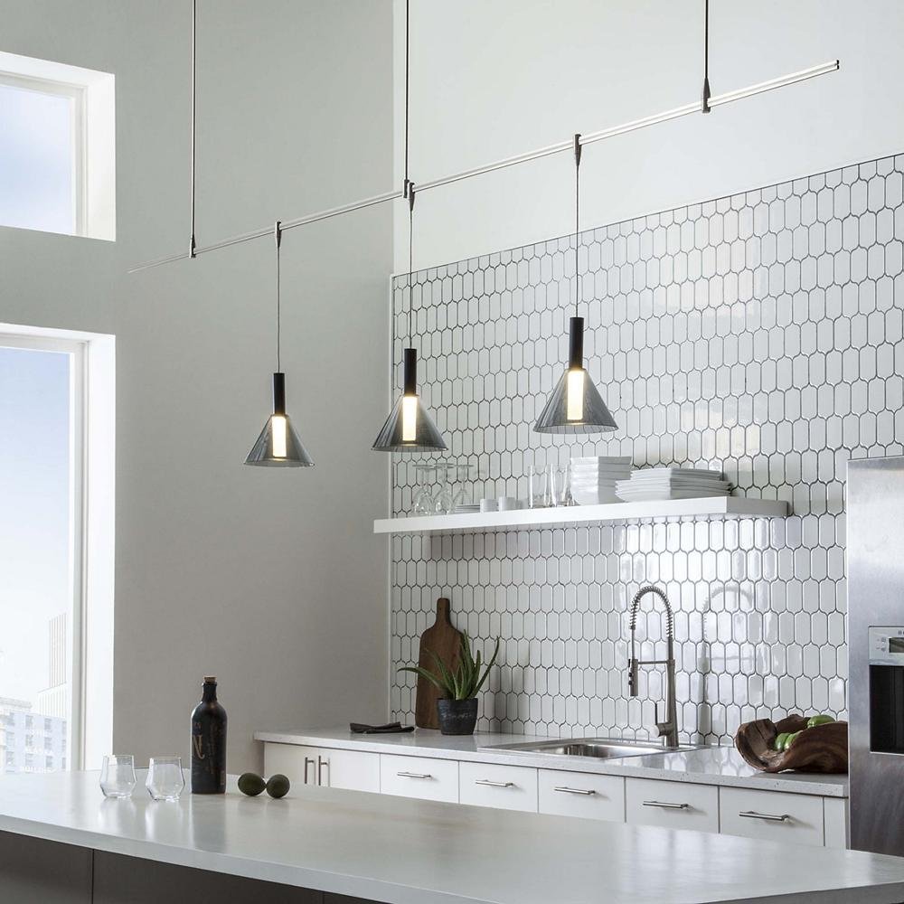 If you don’t want anything hanging over your island, recessed lighting works perfectly. It offers a more concealed light source, while maintaining the appropriate illumination for all tasks. A good recommendation is the Tesla High Output recessed down lights in 2- or 3.5-inch sizes.