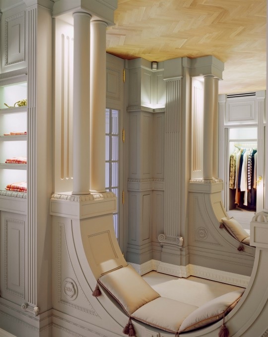 In this bizarre masterpiece, the whole shop is upside down. The arched doors become gently curved benches. The calm and collected classic design amplifies an uncanny feeling. While having all your furniture mounted to the ceiling is not the most practical approach, take from this the idea of using something in a way it is not intended. Place things in spaces they don’t traditionally go. Mount a picture upside down. Let yourself be shocked by looking at the same old space in a fully new way.
