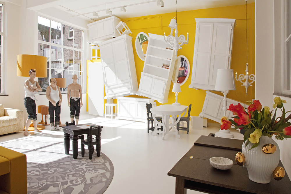 Sometimes it is as simple as turning an idea on its head. Viktor and Rolf are avant-garde fashion denizens of their own right. The two took their signature sense of surrealism and whimsy to the walls when designing their first showroom in Milan.