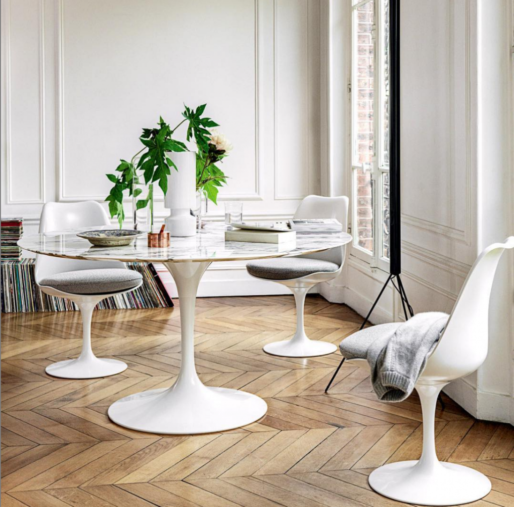 The Saarinen Round Dining Table from Knoll is an iconic, masterful creation from world-renowned Finnish designer Eero Saarinen. Responsible for the famous Gateway Arch in St. Louis, Missouri, and the Washington Dulles International Airport in Washington D.C., Saarinen created this dining table with the same neo-futuristic vision exemplified in his other works.